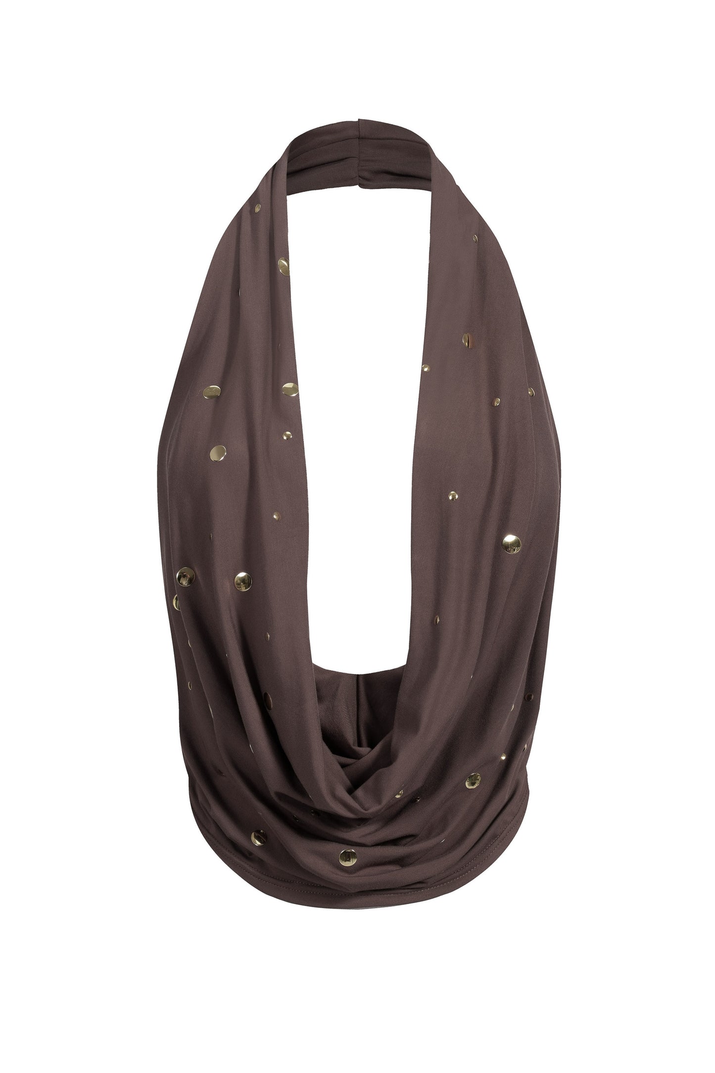 All‑over gold stud embellishment.